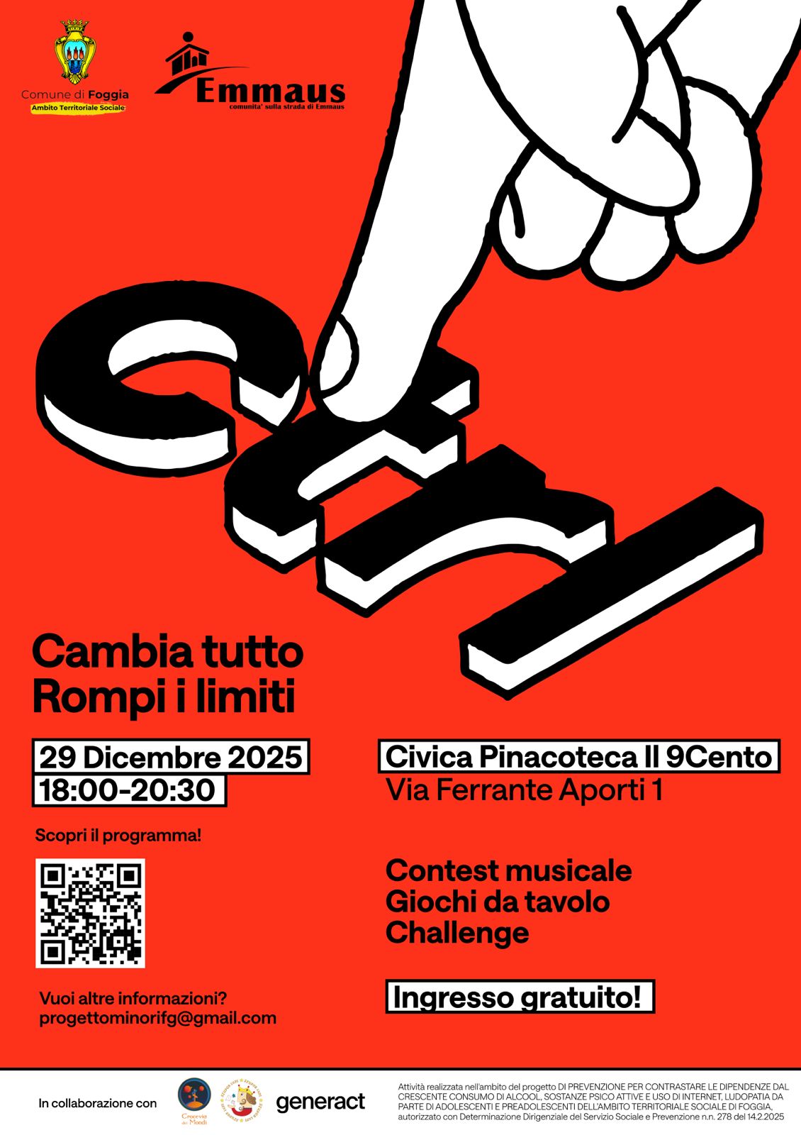 Museo Civico di Foggia Piazza Vincenzo Nigri, 3,, Foggia, ItalyIl Centro Antiviolenza “Carmela Morlino” dell’Ambito Territoriale di Foggia e il Centro Antiviolenza “Impegno Donna”, in collaborazione con l’Ambito Territoriale Sociale di Foggia, annunciano l’avvio ufficiale del calendario degli eventi di sensibilizzazione previsti nell’ambito del Programma Antiviolenza R.I.S.A.L.T.O. con un appuntamento di altissimo rilievo culturale. Sabato 20 dicembre p.v., alle ore 18:30 presso il Museo Civico di Foggia, si terrà la Lectio Magistralis “Donne Distorte” di Daniela Baldassarra, scrittrice, autrice e monologhista teatrale tra le voci più riconosciute a livello nazionale sui temi della narrazione femminile e della lotta alla violenza di genere. Attraverso il suo stile incisivo, ironico e profondamente umano, Baldassarra accompagnerà il pubblico in un percorso di riflessione sulla rappresentazione delle donne nella società contemporanea, mettendo in luce distorsioni, stereotipi e dinamiche culturali che Programma Antiviolenza R.I.S.A.L.T.O ancora oggi alimentano la violenza di genere. L’evento intende offrire uno spazio di consapevolezza, confronto e mobilitazione civile, in linea con la mission del Programma R.I.S.A.L.T.O., che promuove interventi di prevenzione, sostegno ed empowerment femminile. L’iniziativa rappresenta il primo di una serie di appuntamenti culturali, formativi e sociali con l’obiettivo di coinvolgere la cittadinanza e rafforzare la rete territoriale di contrasto alla violenza. L’ingresso all’evento è gratuito fino a esaurimento posti.